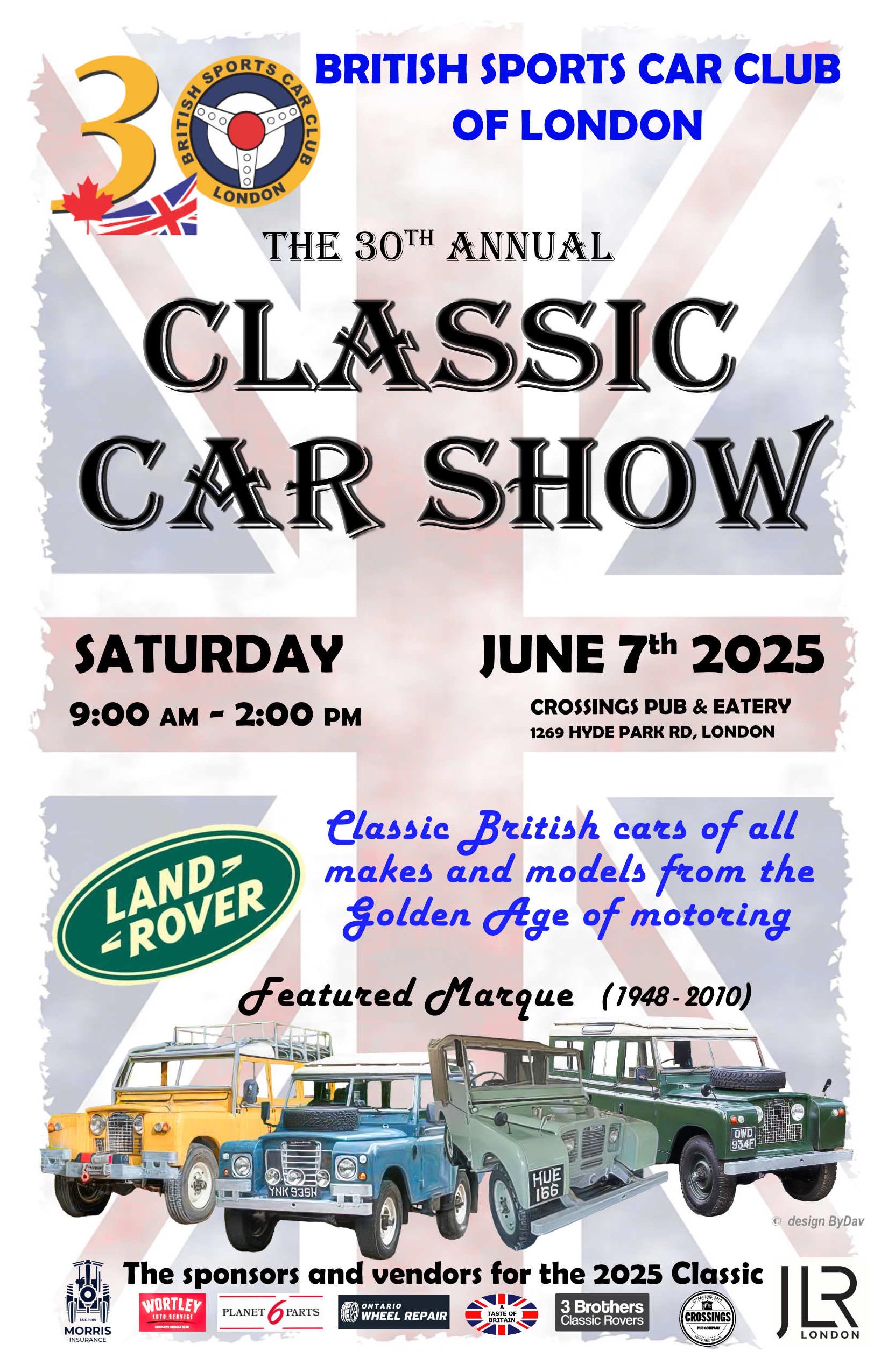 Now in it's 30th year, the "Classic" is hosted annually by the BSCCL on the first Saturday of June. Over the years the event has been consistently popular with local owners and fans of British cars. Depending on the year, and of course the weather, there is a turnout of 50 to 60 vehicles covering a wide variety of marques. Cars and spectators are drawn from Southwestern Ontario as well as from Michigan and Toronto areas.